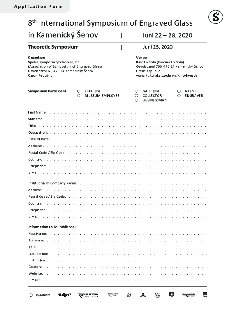 Application Form8th International Symposium of Engraved Glass June 22 28, 2020 inKamenick Nov Theoretic Symposium Organizer: Spoken symposia ratio ska, z.s. (Association of Symposium of Engraved Glass)
