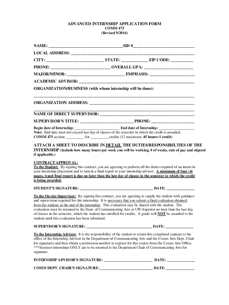 ADVANCED INTERNSHIP APPLICATION INSTRUCTIONS