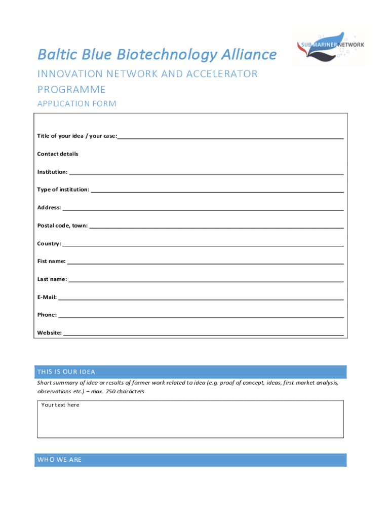 Editing balticbluebioallianceapplicationforminnovation network and accelerator2019v3docx online