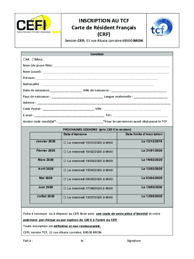 Obtenir le gratuit INSCRIPTION AU TCF Carte de Rsident Franais (CRF)