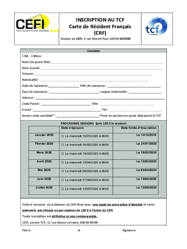 Obtenir le gratuit INSCRIPTION AU TCF Accs la Nationalit ... - CEFI FORMATION