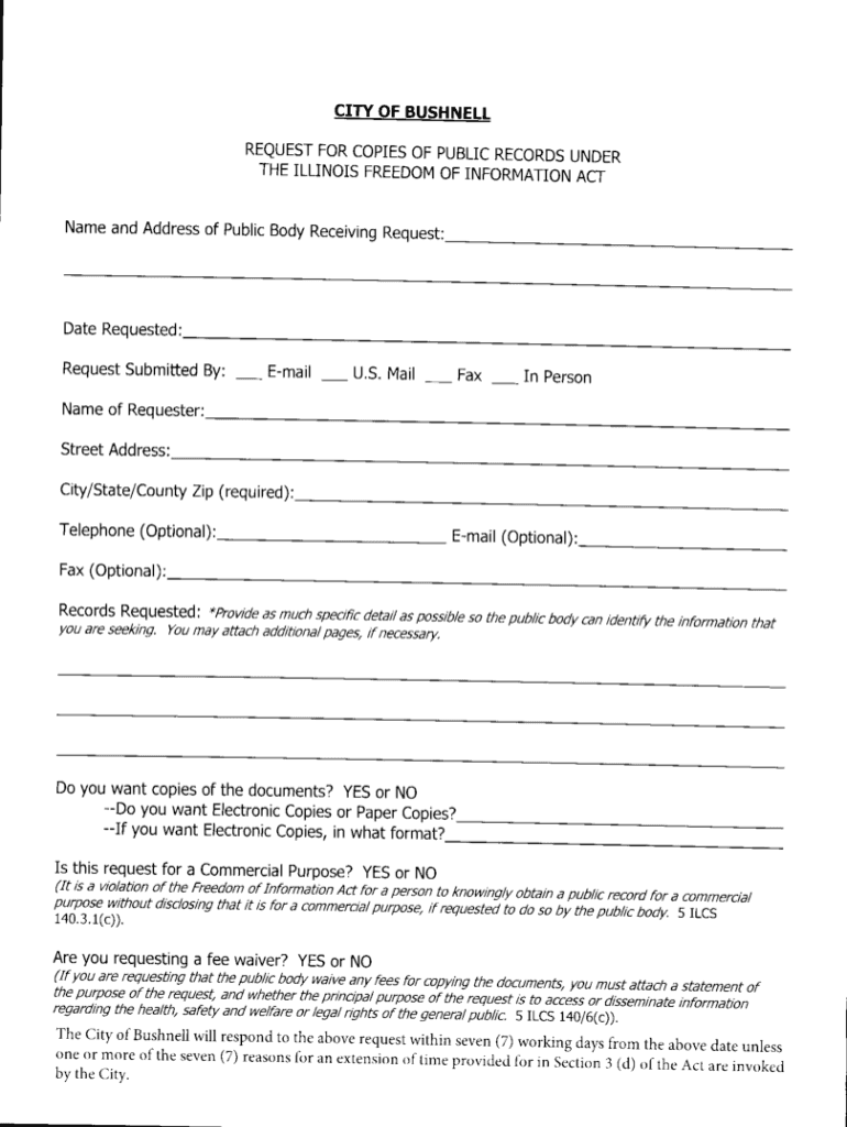 Get the free PDF Freedom of Information Act Request (FOIA) - City of Bushnell, IL Home