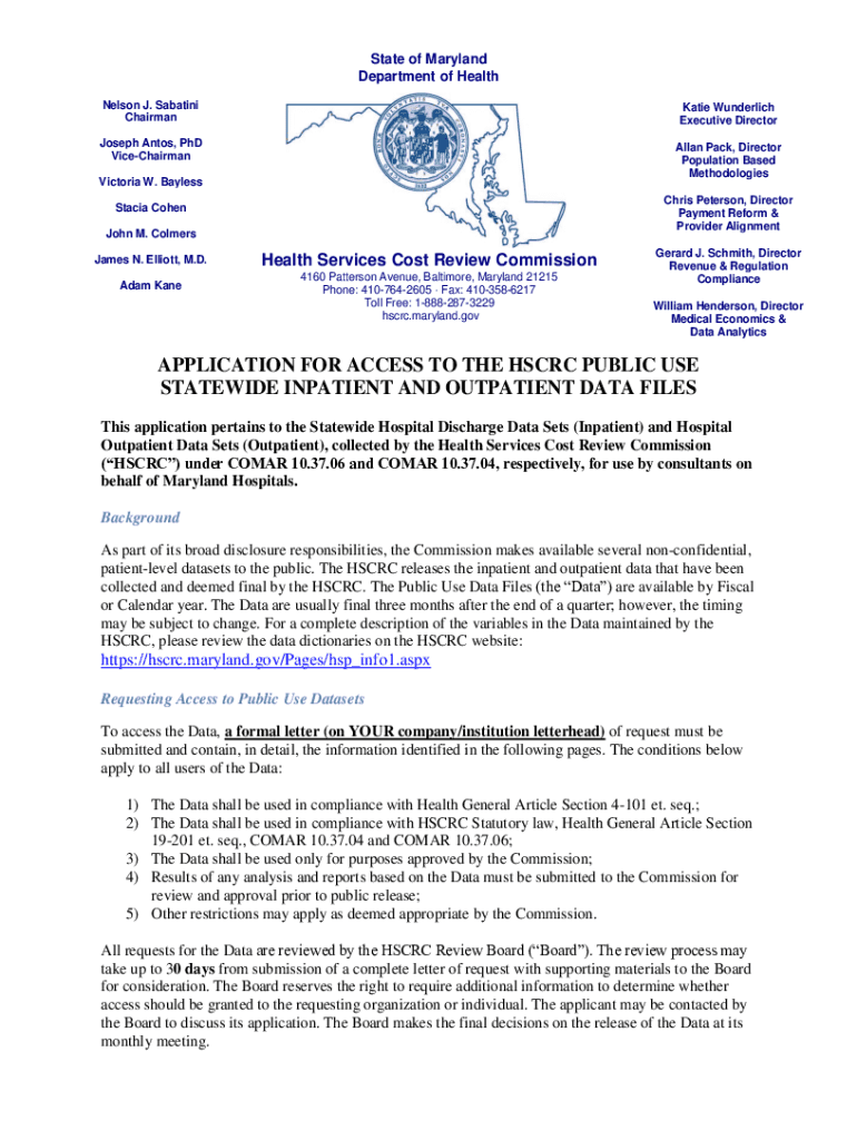 State of Maryland Department of Health Nelson J. Abating Chairman Katie Wunderlist Executive Director Joseph Ants, PhD ViceChairmanAllan Pack, Director Population Based Methodologies Victoria W. BaylessChris