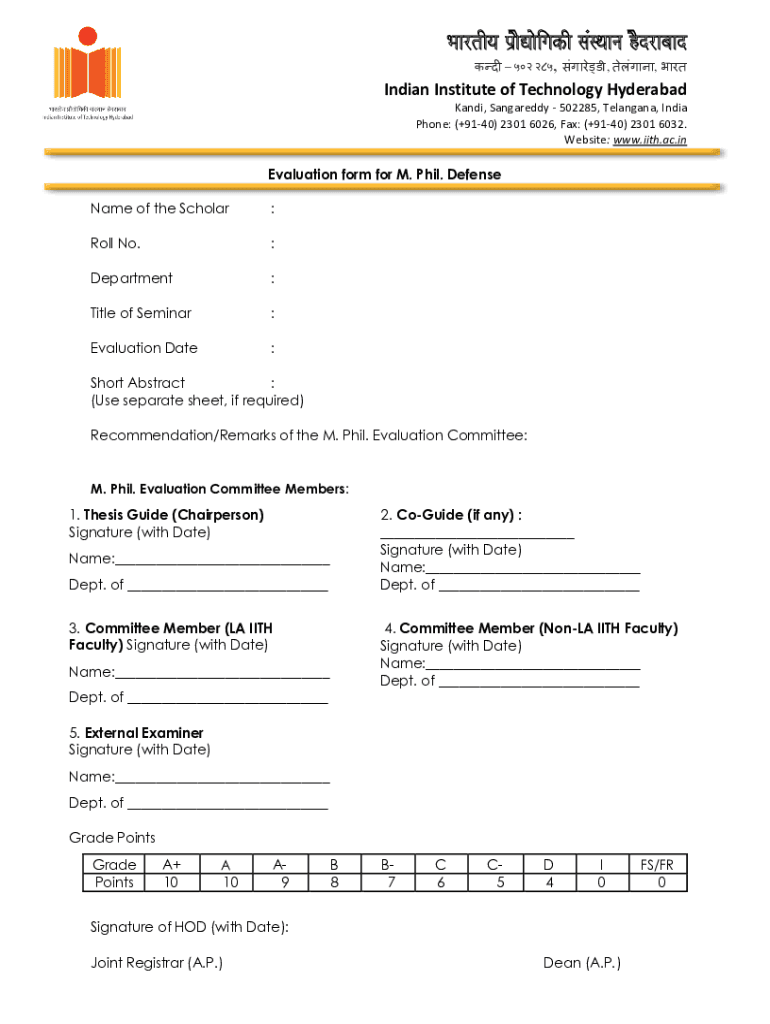 Bavaria p aOVaoigakI samsara Hyderabad, ,, Indian Institute of Technology Hyderabad Kanji, Haggardly 502285, Telangana, India Phone: (+9140) 2301 6026, Fax: (+9140) 2301 6032. Website: www.iith.ac.inEvaluation