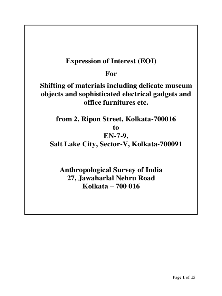 Expression of Interest (EOI) For Shifting of materials including delicate museum objects and sophisticated electrical gadgets and office furniture etc. from 2, Ripen Street, Kolkata700016 to EN79,