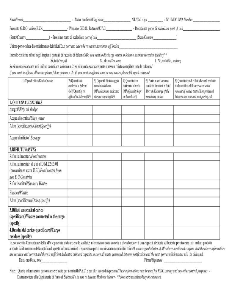 Get the free Nave/Vessel - Stato bandiera/Flag state N.I./Call sign - N ...