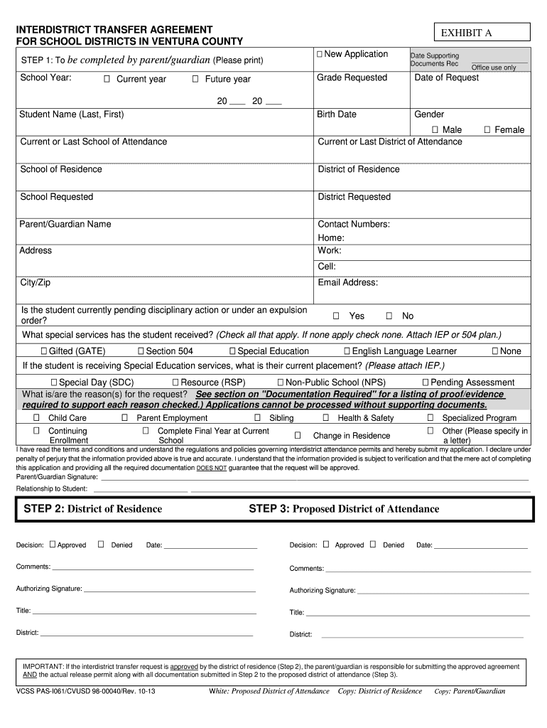 Get the free Interdistrict Transfer Agreement