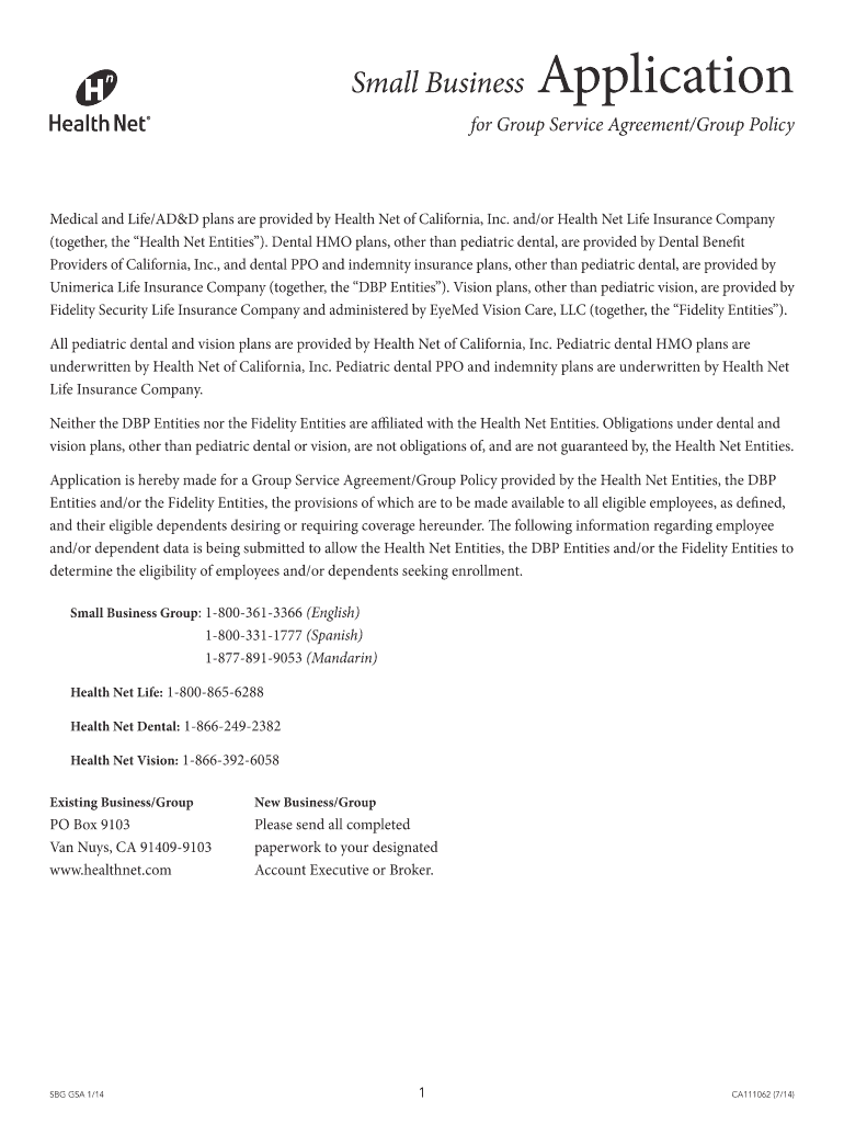 The Small Business Group Service Agreement Application is a crucial form for small businesses in California aiming to secure group health, dental, and vision insurance plans. This application is utilized to apply for coverage from Health Net of California, Inc. and other significant insurance entities. By completing this application, small business owners can navigate the often complex process of obtaining essential insurance options for themselves and their employees.