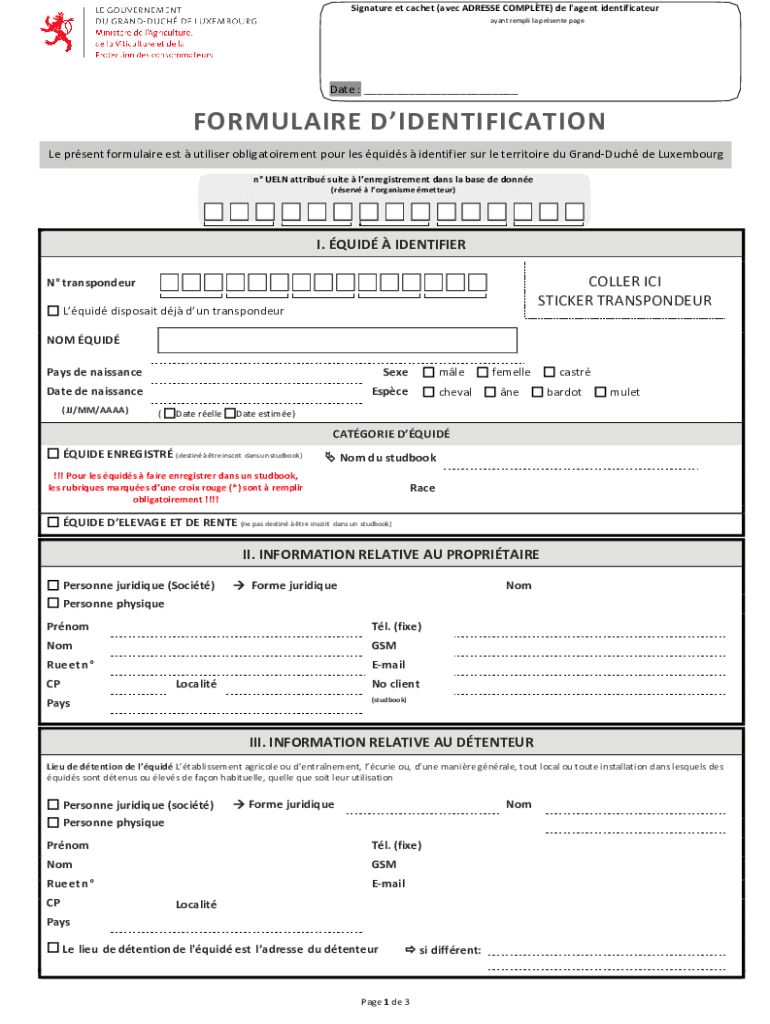 Signature ET cachet (Alec ADDRESS COMPLETE) de l 'agent identification plant temple la present predate : FORMULA IRE IDENTIFICATION Le present formula ire est utilizer obligatoirement pour LES quids