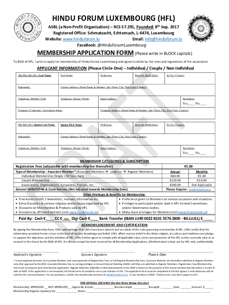 Get the free HINDU FORUM LUXEMBOURG (HFL)