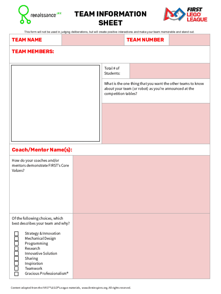 This form will not be used in judging deliberations, but will create positive interactions and make your team memorable and stand out. TEAM NAMELESS NUMBERED MEMBERS:
