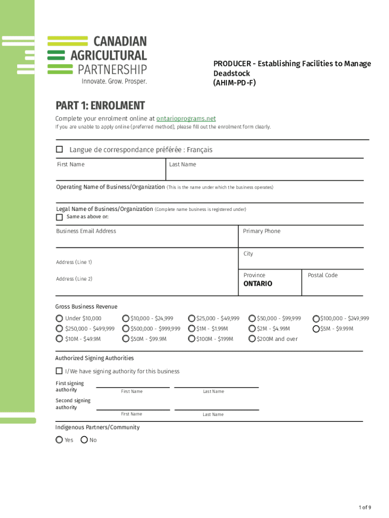 PRODUCER Establishing Facilities to Manage Dead stock (AIMED)PART 1: Enrollment Complete your enrollment online at ontarioprograms.net If you are unable to apply online (preferred method), please
