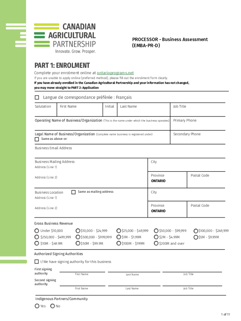 PROCESSOR Business Assessment (EMBARK)PART 1: ENROLMENTComplete your enrollment online at ontarioprograms.net If you are unable to apply online (preferred method), please fill out the enrollment form