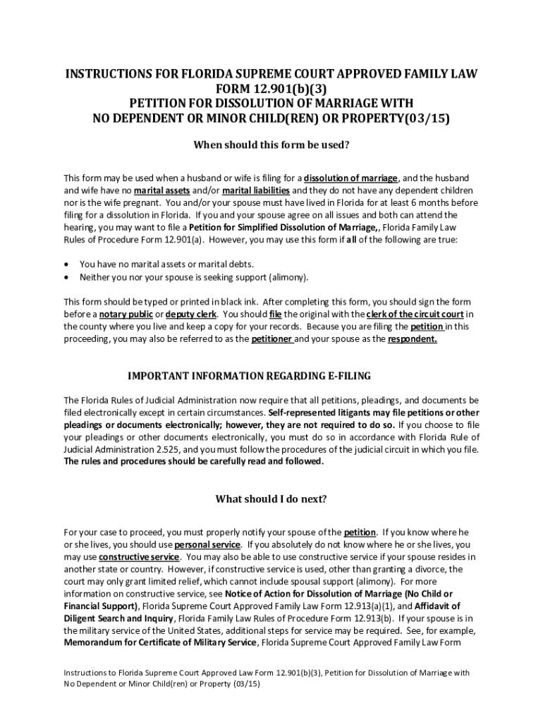 INSTRUCTIONS FOR FLORIDA SUPREME COURT APPROVED FAMILY LAW
