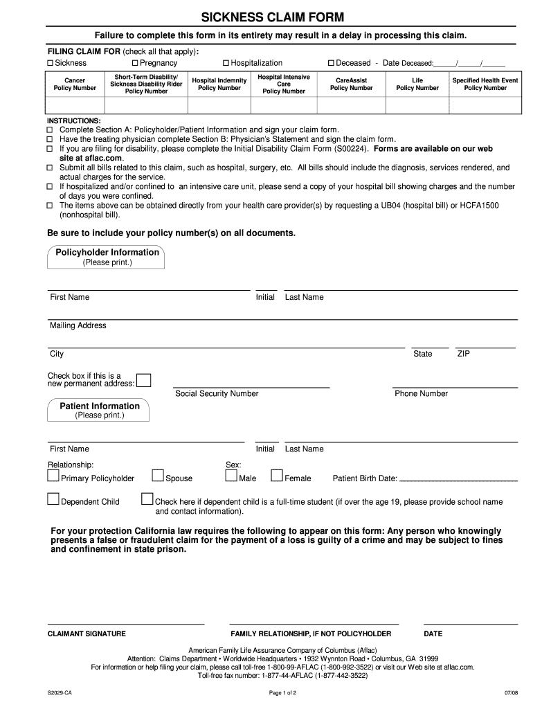 The Sickness Claim Form is eligible for policyholders who have Aflac coverage, as well as their physicians and claimants filing for sickness-related expenses.
