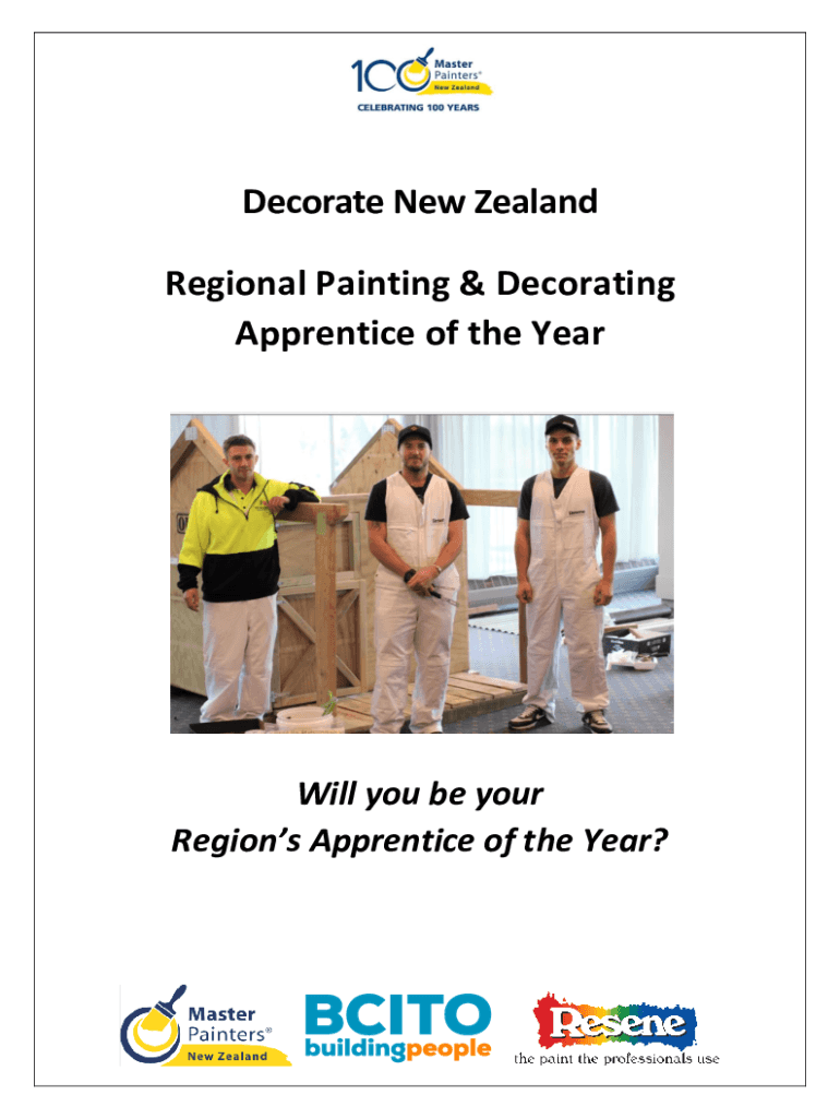 Decorate New Zealand Regional Painting & Decorating Apprentice of the Year Will you be your Regions Apprentice of the Year? Master Painters New Zealand, in partnership with Resent and the BCI TO,