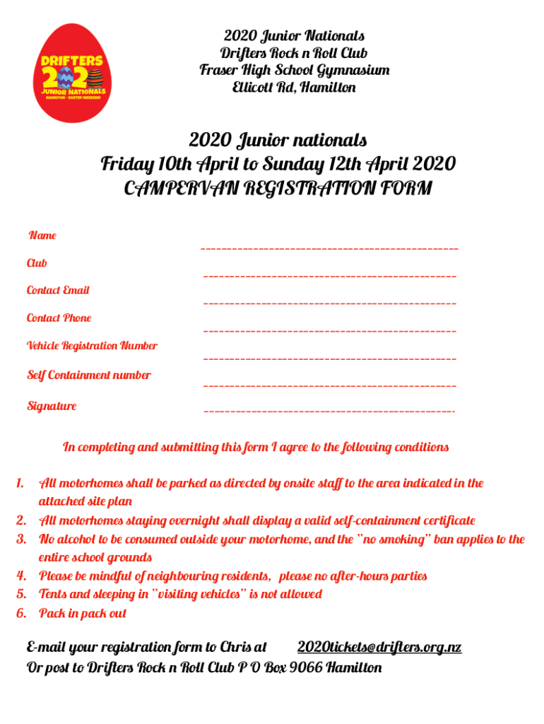 2020 Junior Nationals Drifters Rock n Roll Club Fraser High School Gymnasium Ellicott Rd, Hamilton2020 Junior nationals Friday 10th April to Sunday 12th April 2020 CAMERA REGISTRATION FORM Name Club