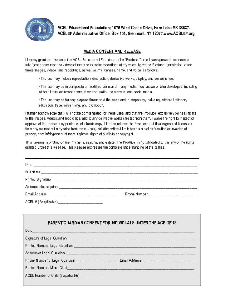 ACBLEF media consent may be required by individuals or organizations who intend to use media content involving the ACBLEF or its related activities.