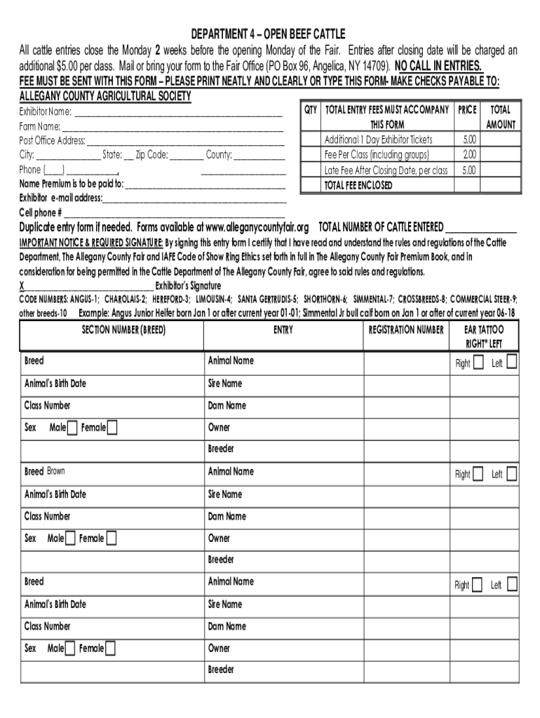 Fill out your beef cattle entry requirements online with pdfFiller!