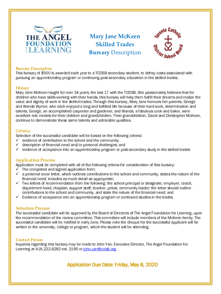 This bursary of $500 is awarded each year to a TC DSB secondary student, to defray costs associated with