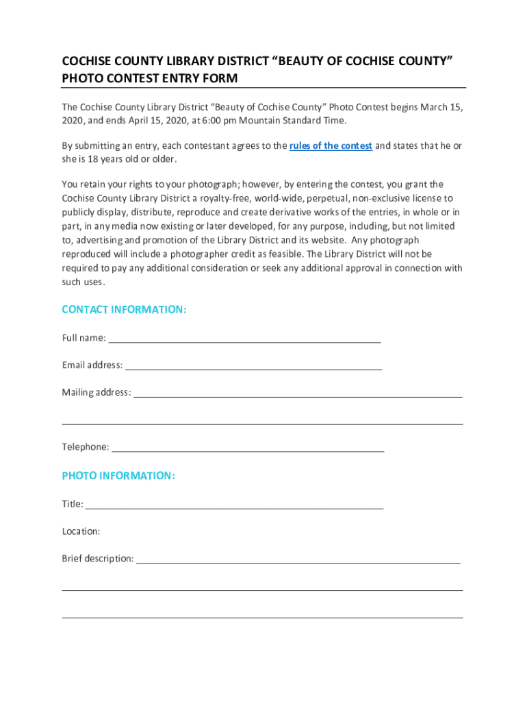 Cochise County Photo Contest is not the form you're looking for?Search for another form here.