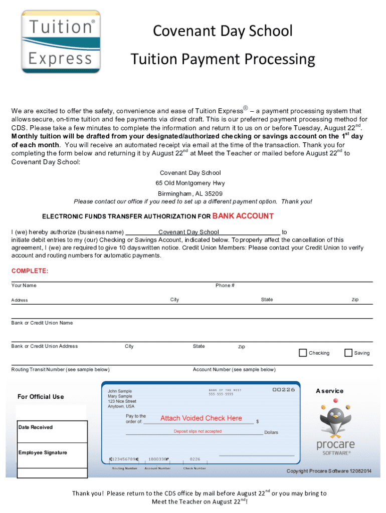 CovenantDaySchool TuitionPaymentProcessing We are excited to offer the safety, convenience and ease of Tuition Express a payment processing system that allows secure, onetime tuition and fee payments