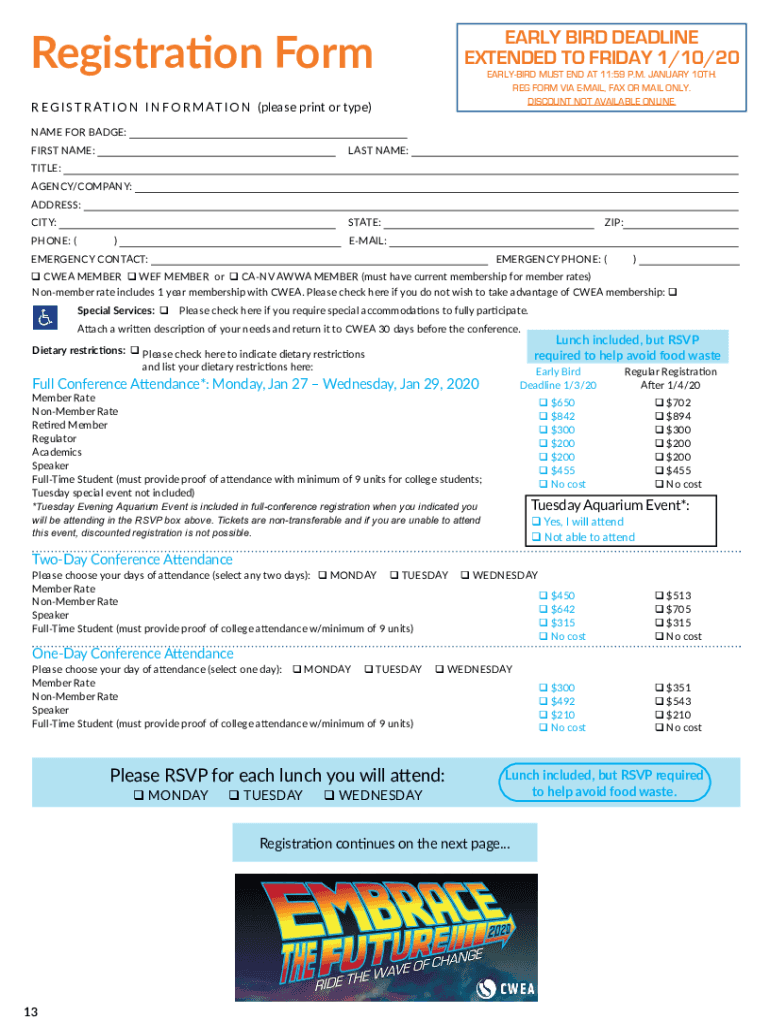 Before you register yourself or a group of persons online, please read all instructions and make sure you know which lunches, tours,