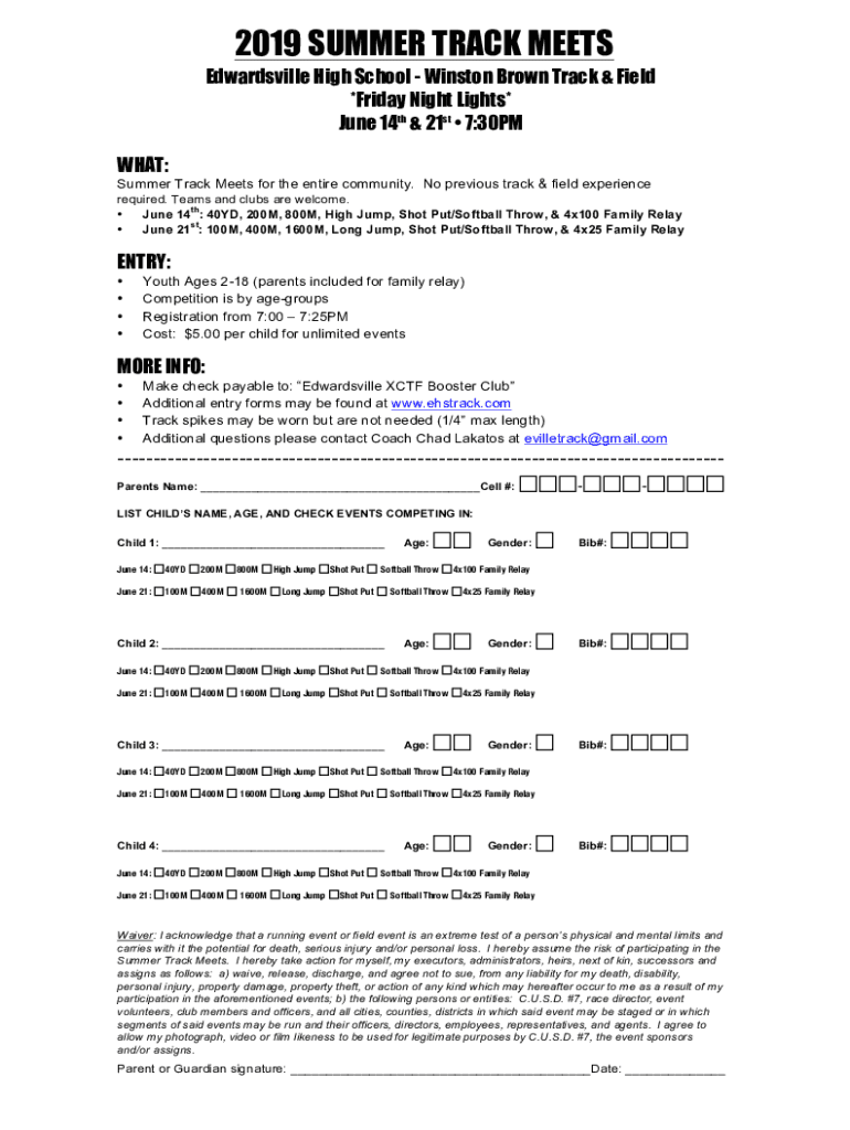 Athletes who wish to participate in summer track programs are required to file the summer track entry formdocx.