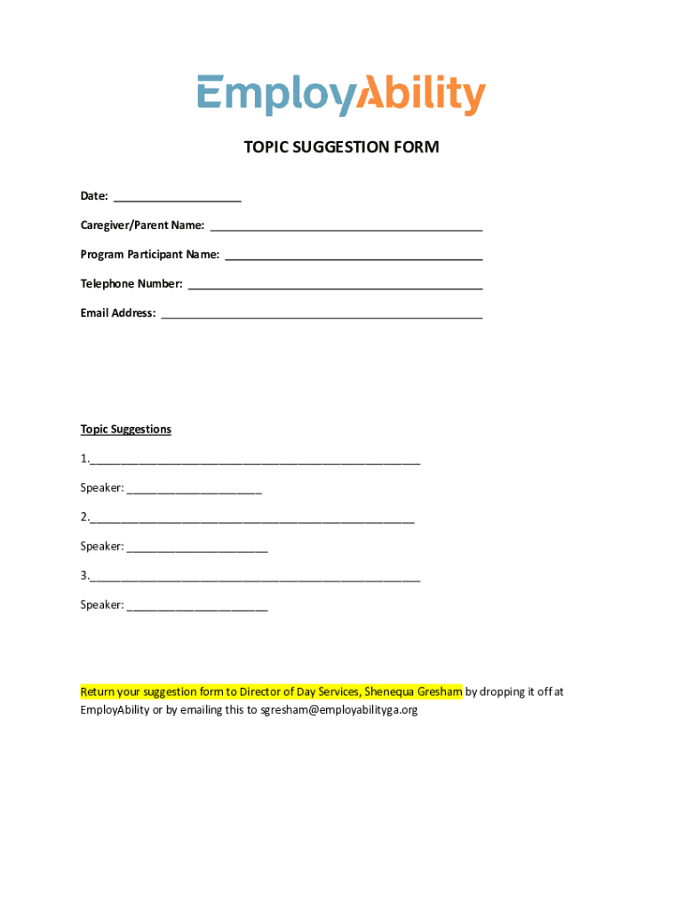 Get the free TOPIC SUGGESTION FORM - EmployAbility