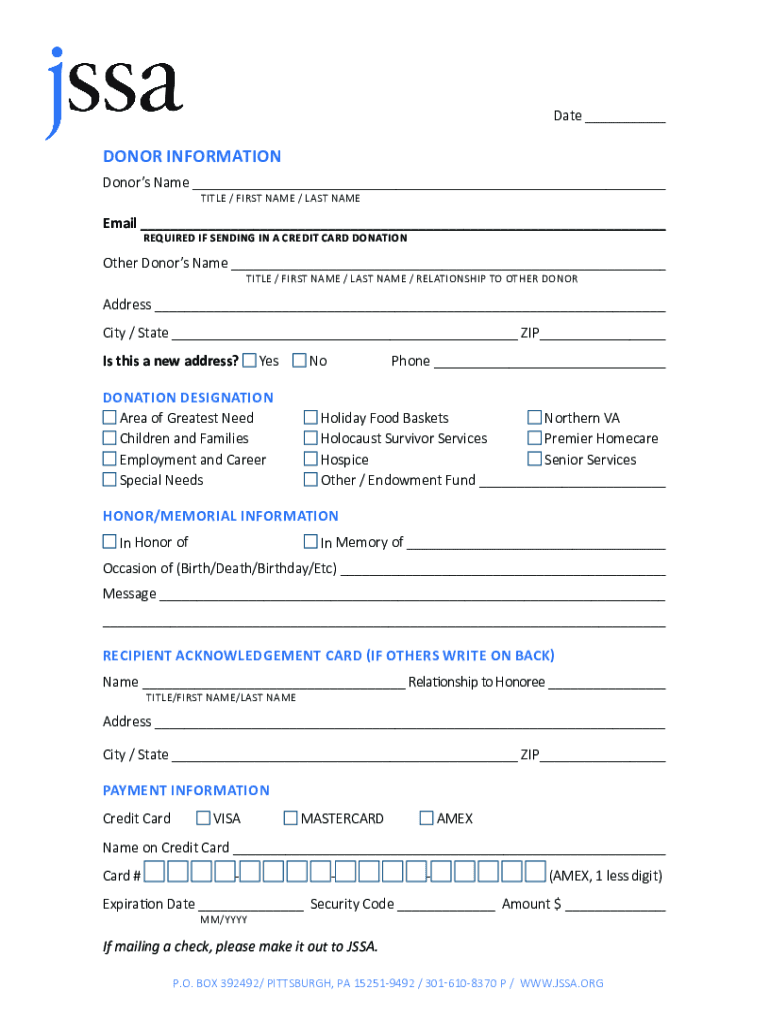 Date DONOR INFORMATION Donors Name TITLE / FIRST NAME / LAST NAMEEmail REQUIRED IF SENDING IN A CREDIT CARD DONATIONOther Donors Name TITLE / FIRST NAME / LAST NAME / RELATIONSHIP TO OTHER DONORAddress