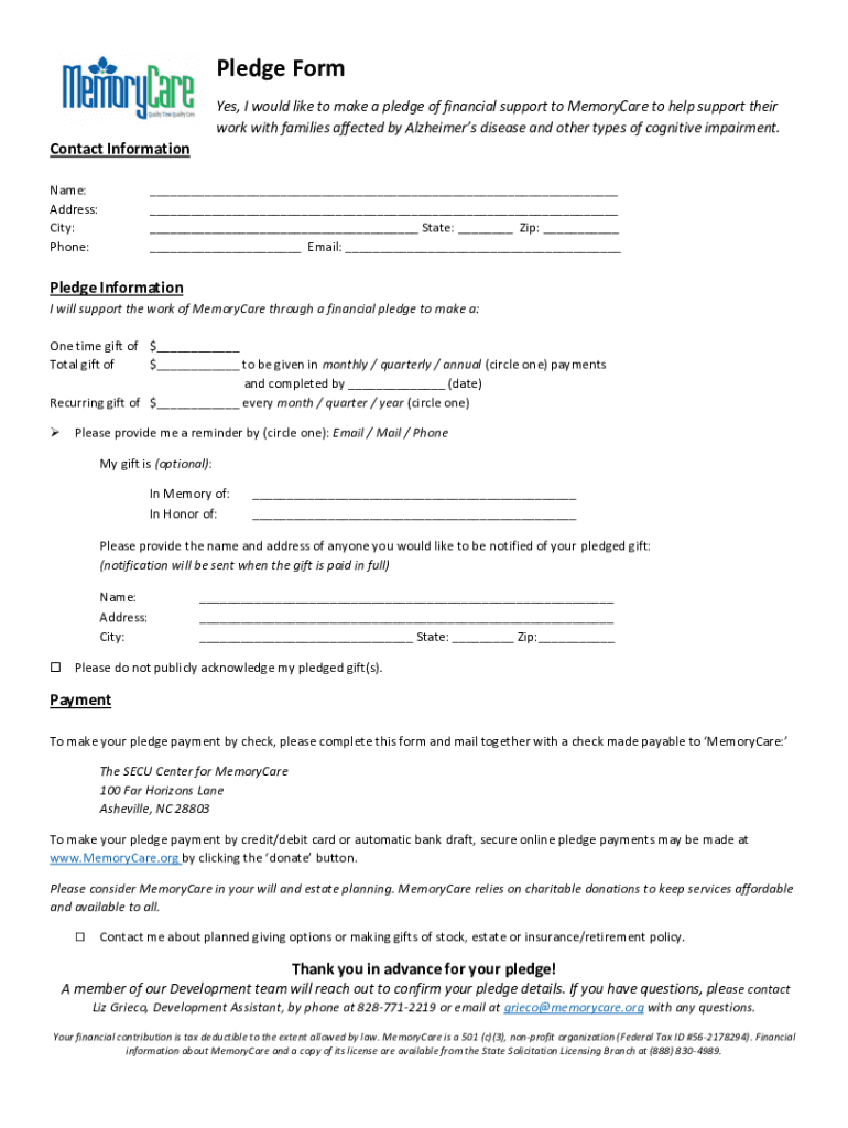 Get the free Pledge Form - MemoryCare