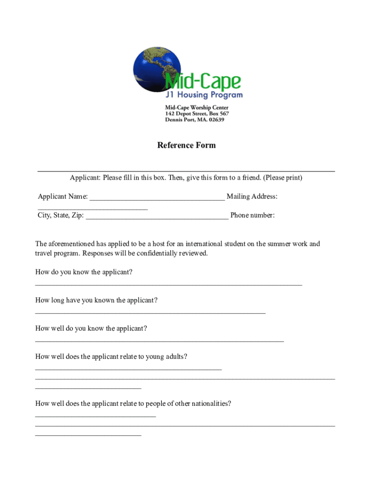 ! Reference FormApplicant: Please fill in this box. Then, give this form to a friend. (Please print) Applicant Name: Mailing Address: City, State, Zip: Phone number:The aforementioned has applied