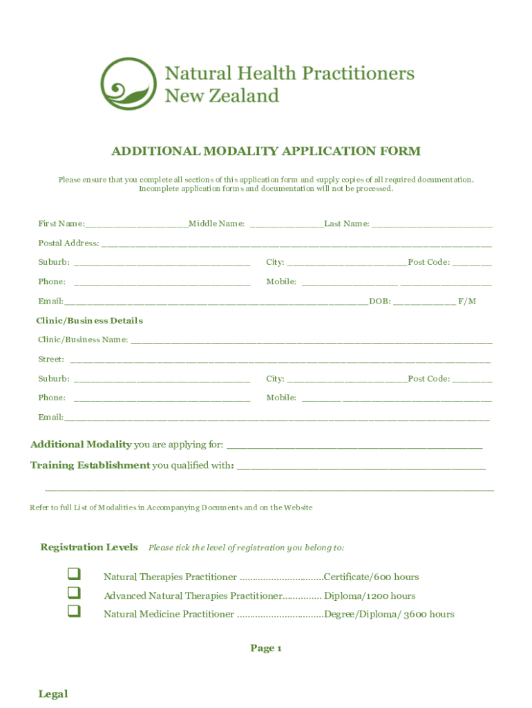 Get the free ADDITIONAL MODALITY APPLICATION FORM - NHPNZ