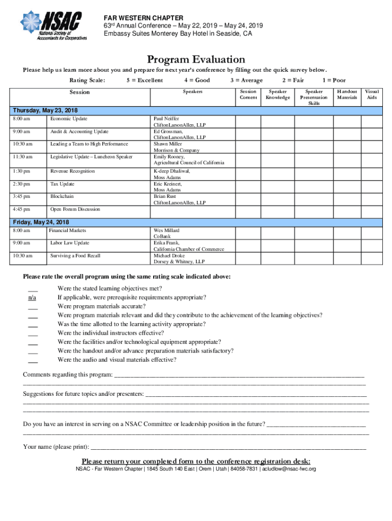 FAR WESTERN CHAPTER 63rd Annual Conference May 22, 2019, May 24, 2019, Embassy Suites Monterey Bay Hotel in Seaside, Program Evaluation Please help us learn more about you and prepare for next year's