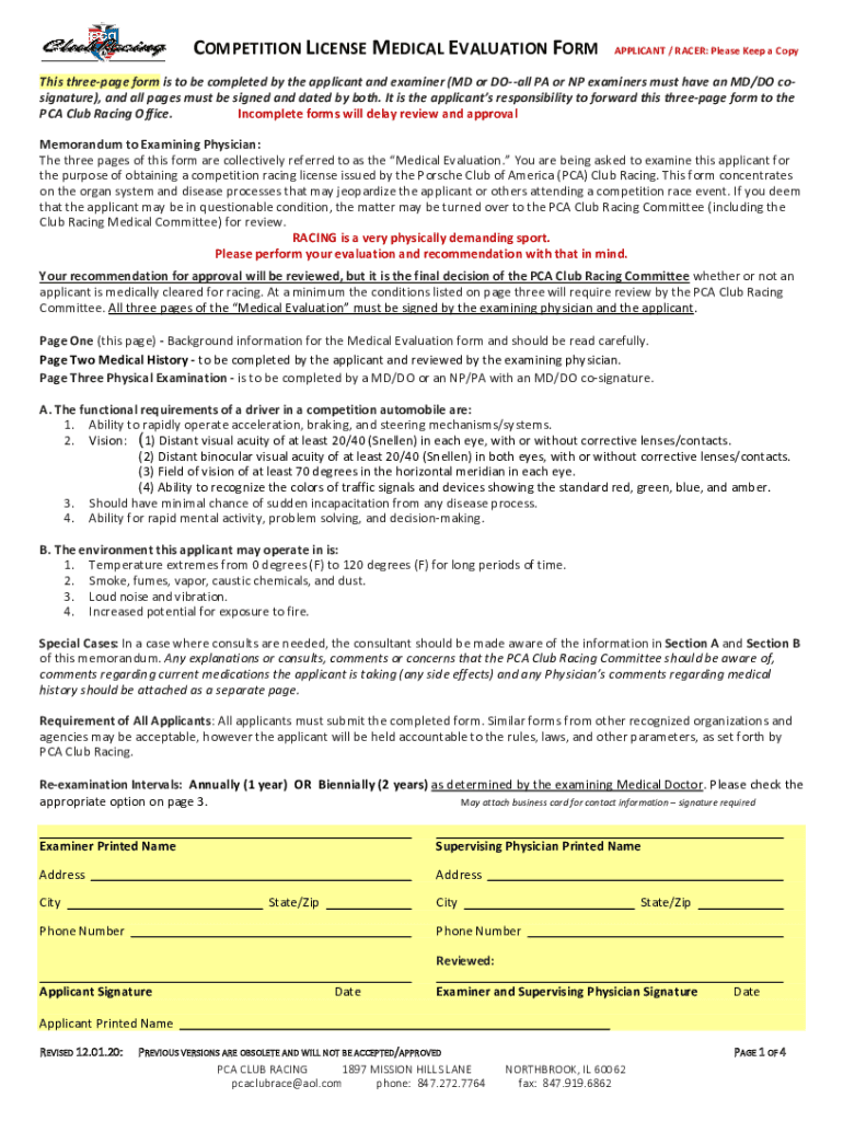 COMPETITION LICENSE MEDICAL EVALUATION FORMAPPLICANT / RACER: Please Keep a Coptic three-page form is to be completed by the applicant and examiner (MD or Doll PA or NP examiners must have an MD/DO