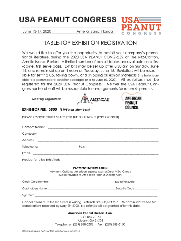 June 1317, 2020Amelia Island, FloridaTABLETOP EXHIBITION REGISTRATION