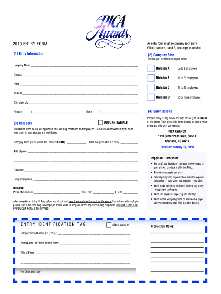 2019 ENTRY Forman entry form must accompany each entry. Fill out sections 1 and 2, then copy as needed. 1 Entry Information 2 Company SizeIndicate your number of employees below:Company Name Division