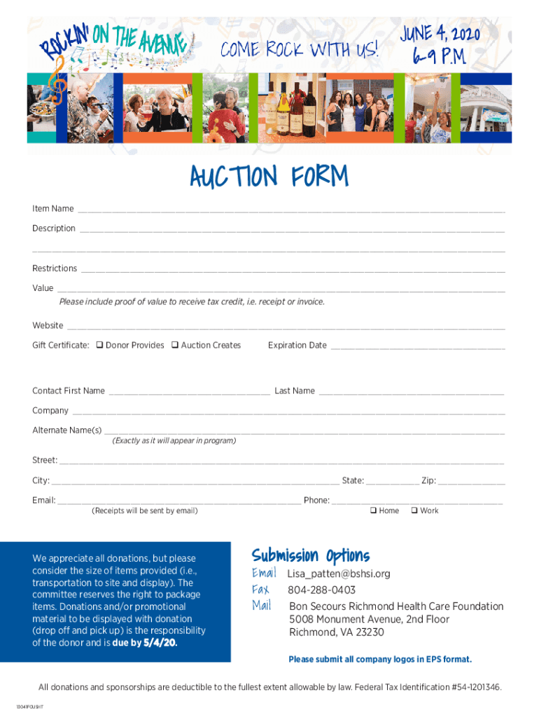 AUCTION FORM Item Name Description Restrictions Value Please include proof of value to receive tax credit, i.e. receipt or invoice. Website Gift Certificate: q Donor Provides q Auction CreatesExpiration