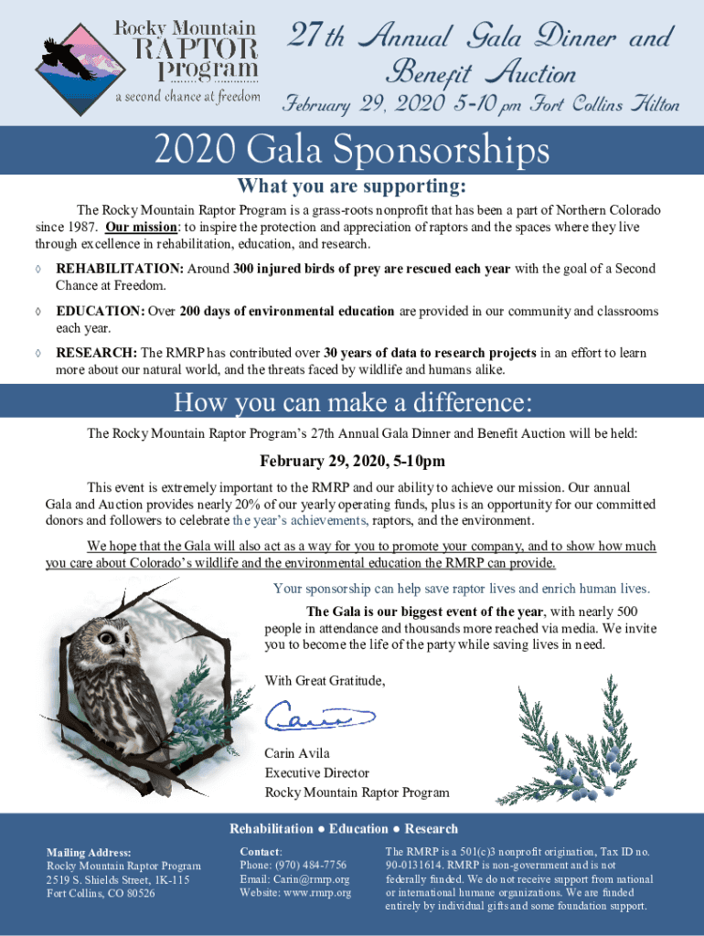 February 29, 2020 510pm Fort Collins Hilton2020 Gala Sponsorships