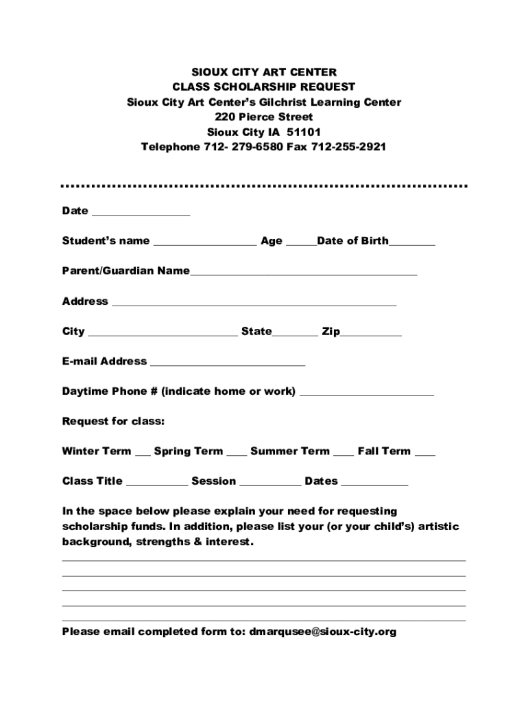 Get the free SIOUX CITY ART CENTER CLASS SCHOLARSHIP REQUEST Sioux City ...