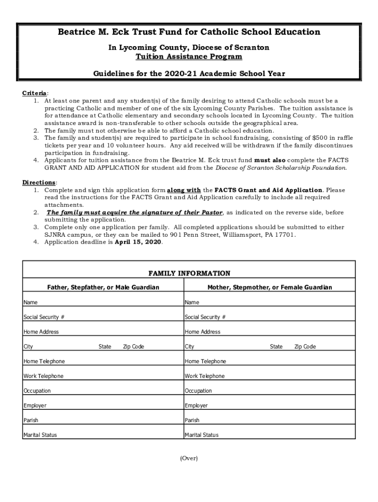Get the free Beatrice M. Eck Trust Fund for Catholic School Education