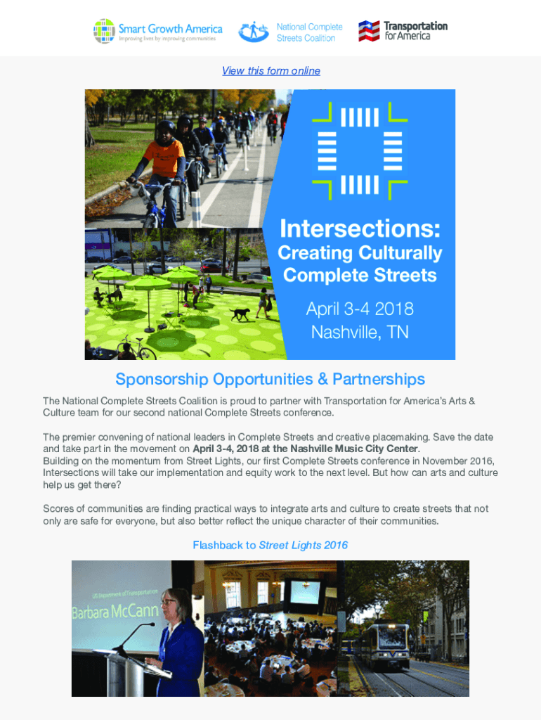 View this form onlineSponsorship Opportunities & Partnerships The National Complete Streets Coalition is proud to partner with Transportation for Americas Arts & Culture team for our second national