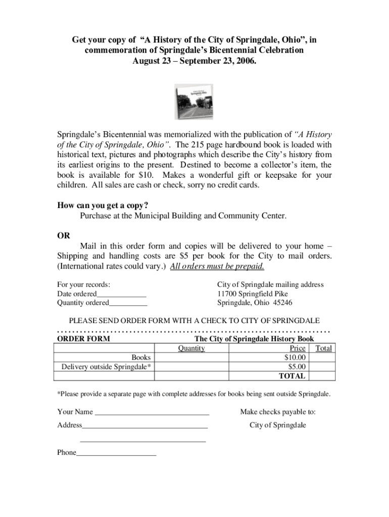 Get the free Get your copy ofA History of the City of Springdale, Ohio, in commemoration of Sprin...
