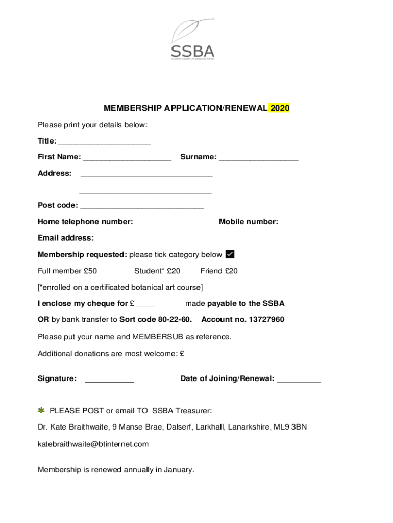 MEMBERSHIP APPLICATION/RENEWAL 2020 Please print your details below: Title: First Name: Address:Surname: Post code: Home telephone number:Mobile number:Email address: Membership requested: please