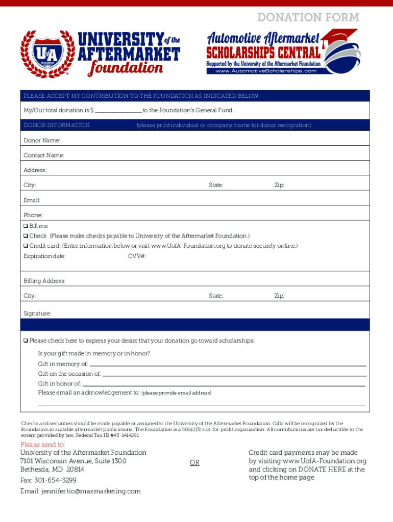 DONATION FORMULAS ACCEPT MY CONTRIBUTION TO THE FOUNDATION AS INDICATED BELOW: My/Our total donation is $ to the Foundations General Fund. DONOR INFORMATION(please print individual or company name