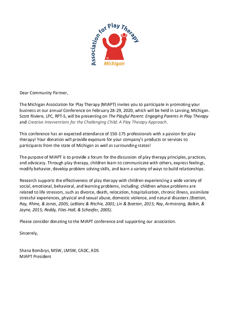 The Michigan Association for Play Therapy (MI APT) invites you to participate in promoting your