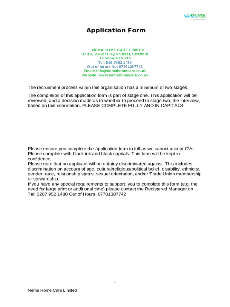 Instructions for the form Application NEMA HOME CARE LIMITED Unit 3, 269-271 ...