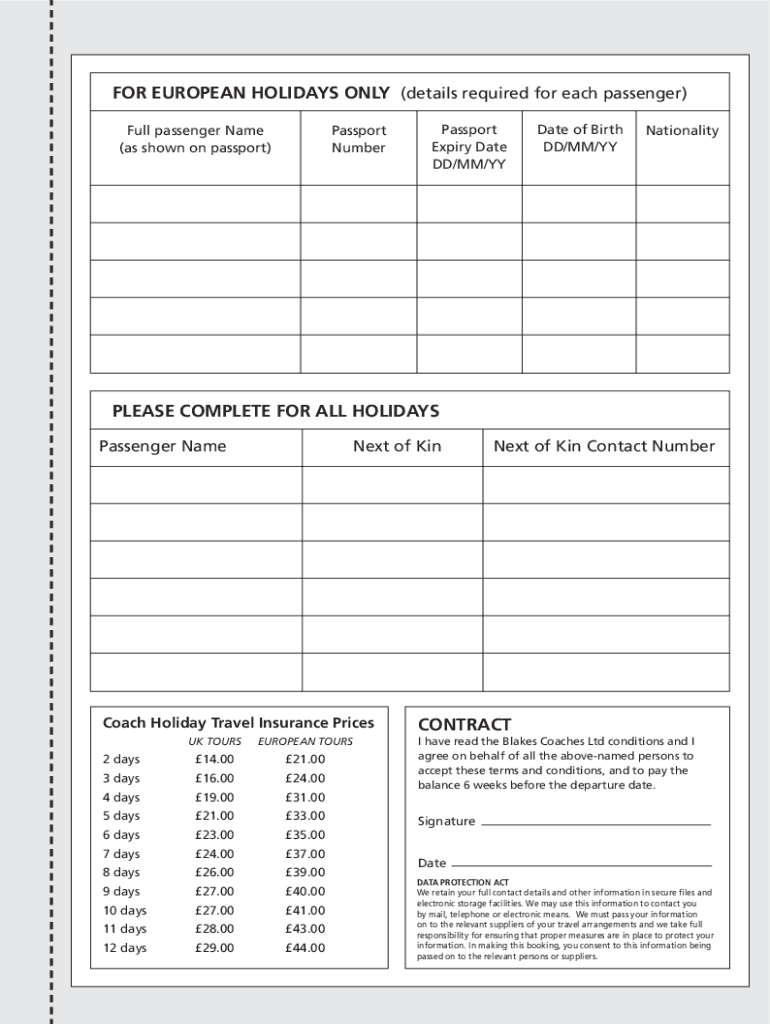 FOR EUROPEAN HOLIDAYS ONLY (details required for each passenger)