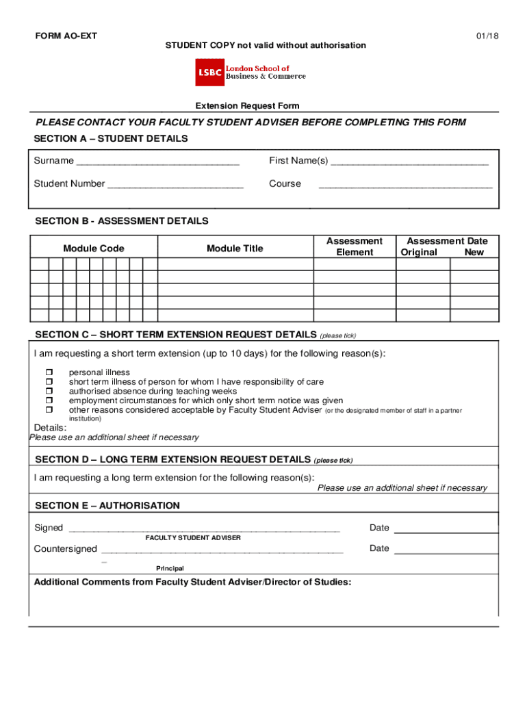 FORM AOEXT01/18 STUDENT COPY not valid without authorisationExtension Request Formulas CONTACT YOUR FACULTY STUDENT ADVISER BEFORE COMPLETING THIS FORM SECTION A STUDENT DETAILS Surname First Name(s)