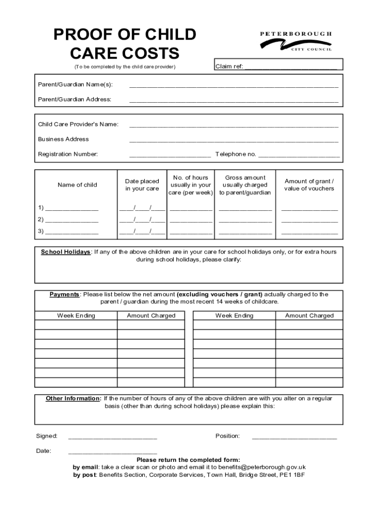 Get the free "Proof of Child Care Costs Form" - Peterborough ...